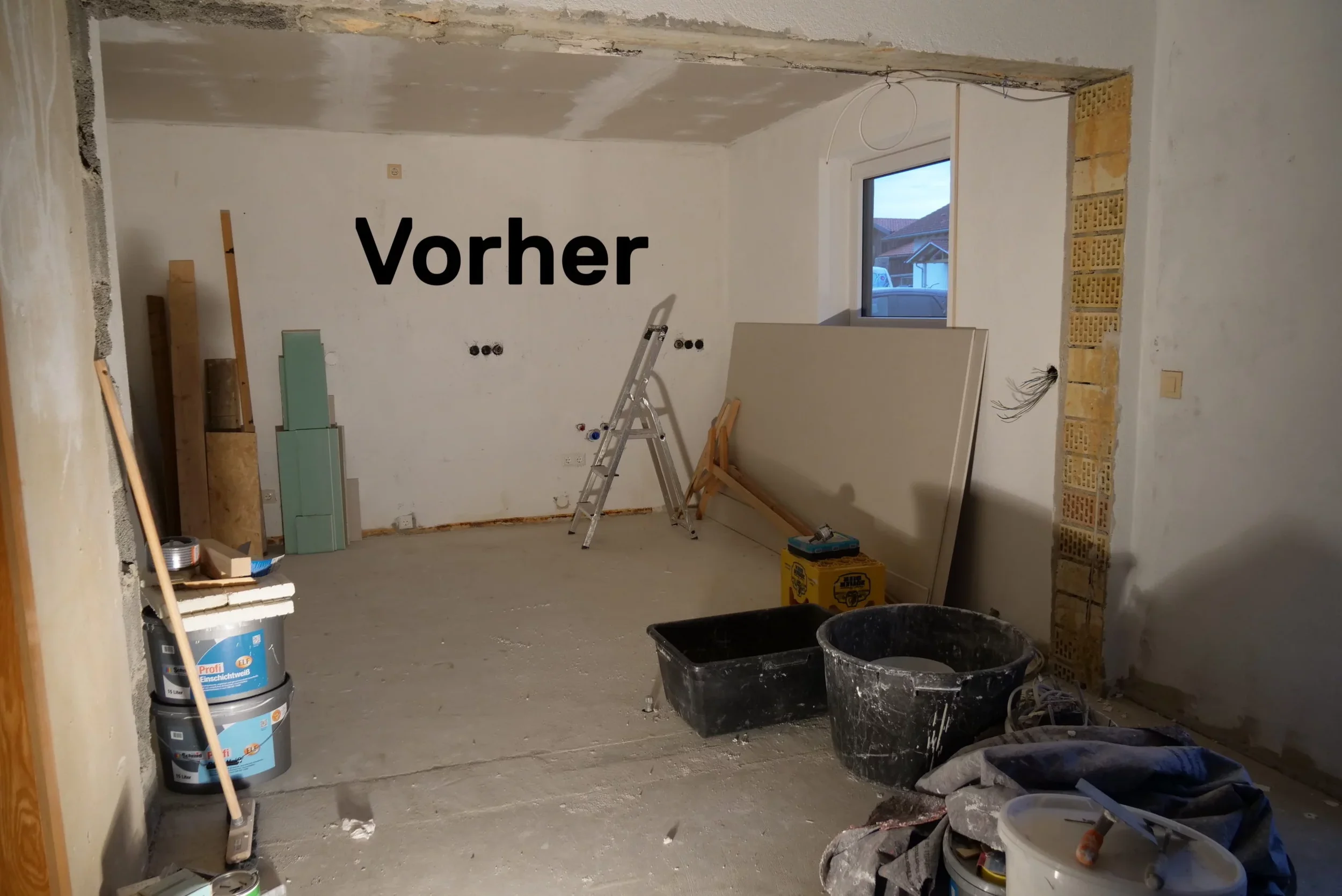 Für uns hieß es also: Altholz, Rahmenoptik, Stein und Massivholz miteinander zu verbinden. Angela und Roland haben um den Traum der Wohnküche zu verwirklichen die Wand zwischen der früheren Küche und angrenzendem Esszimmer herausgerissen und so Platz für die Wohnküche gemacht. Dazu gab es neue Lampen-Spots und der Küche für mehr Licht, einen neuen Boden und der neue Raum wurde natürlich neu Verputzt und gestrichen.
